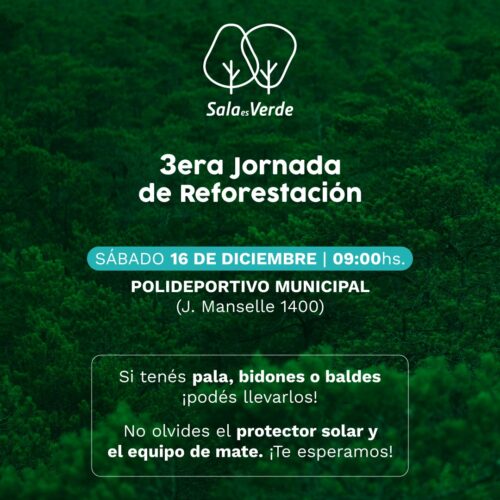 13 diciembre, 2023SalaEsVerde organiza la 3° Jornada de Reforestación en Vicuña Mackenna, este Sábado 16 de Diciembre a partir de las 9 am. Vení a participar de la jornada de reforestación organizada […]
