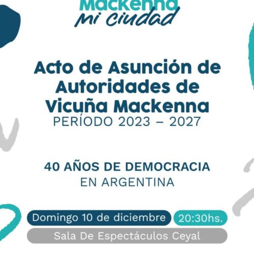 7 diciembre, 2023El próximo Domingo 10 de Diciembre se realizará el Acto de Asunción de Autoridades Electas de Vicuña Mackenna. El próximo Domingo 10 de Diciembre, a las 20:30 horas, se realizará el […]