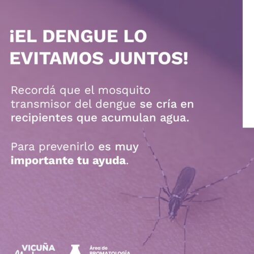 1 diciembre, 2023Recordá que el mosquito trasmisor del dengue se cría en recipientes que acumulan agua. El dengue es una enfermedad que se transmite por la picadura de un mosquito que se […]