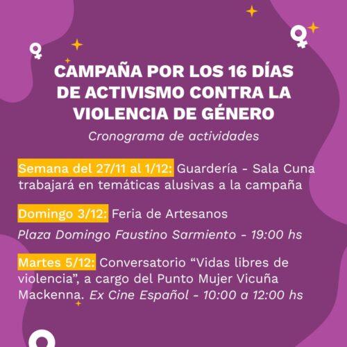 28 noviembre, 2023A partir de esta semana comienza la campaña de 16 días de activismo contra la violencia de género. La campaña de 16 días de activismo contra la violencia de género […]