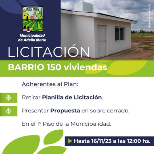 1 noviembre, 2023El plan Barrio 150 Viviendas de Adelia María sorteará 5 nuevas casas y licita 5 más. El plan de vivienda social que beneficia a las familias de bajos recursos ha […]