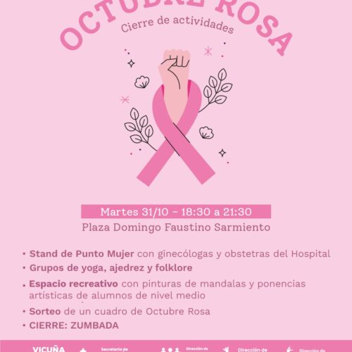 27 octubre, 2023Este Martes 31 de Octubre en la Plaza Domingo F. Sarmiento se realizará el cierre de actividades de la campaña OCTUBRE ROSA. Octubre Rosa es una campaña de concientización y […]