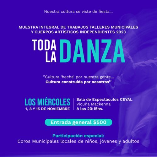 25 octubre, 2023Muestra integral de trabajos de talleres municipales de Vicuña Mackenna y cuerpos artísticos independientes 2023. Del 1 al 15 de Noviembre, se realizará la Muestra integral de trabajos de talleres […]