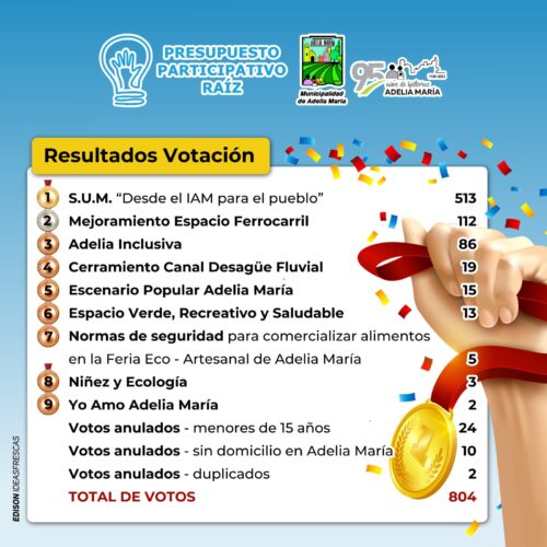 26 octubre, 2023La Municipalidad de Adelia María, dio a conocer los resultados de la votación de los proyectos presentados en el programa Presupuesto Participativo 2023. La comunidad de Adelia María ha participado […]