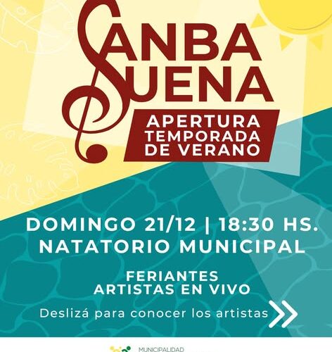 16 diciembre, 2025El ritmo que enciende el verano llega al Natatorio Municipal. Música, alegría y encuentro para disfrutar en familia y con amigos. Domingo 21/12 18:30 hs Natatorio Municipal Vení a disfrutar […]