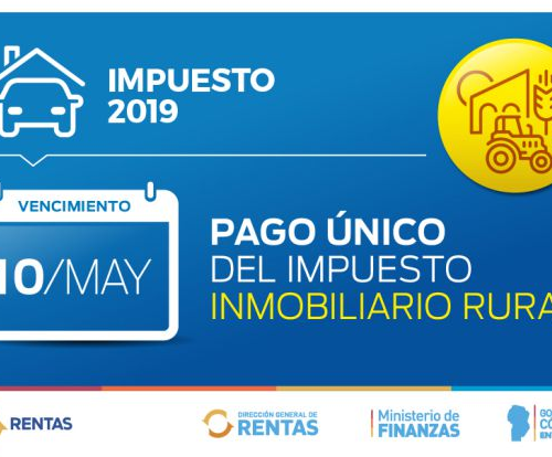 6 mayo, 2019Se puede abonar hasta el próximo viernes 10 de mayo. También vence la cuota 4 para quienes eligieron el pago mensual del Inmobiliario Urbano, Rural, Automotor y/o Embarcaciones.