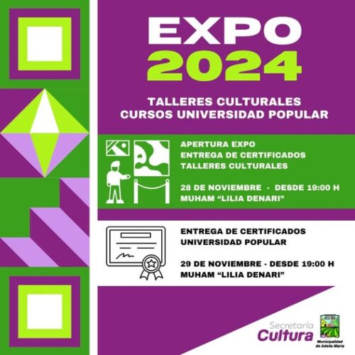 25 noviembre, 2024Talleres Culturales y Cursos de la Universidad Popular de Adelia María Los y las invitamos a compartir juntos las hermosas propuestas para este año. Jueves 28 de noviembre – Desde […]