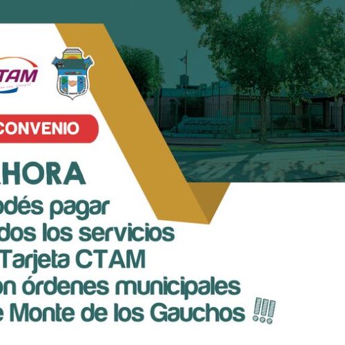 18 noviembre, 2024Las facturas de todos los servicios y el resumen de la Tarjeta CTAM se pueden abonar con órdenes municipales de Monte de los Gauchos. CTAM…va con vos, siempre!