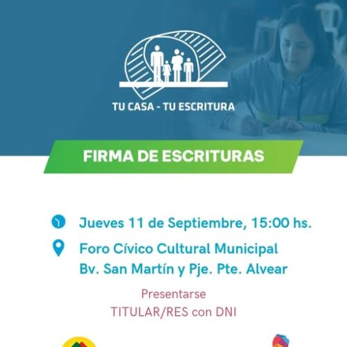 8 septiembre, 2025La Municipalidad de Bulnes informa a la comunidad que el próximo jueves 11 de septiembre a las 15:00 hs., en el Foro Cívico Cultural Municipal (Bv. San Martín y Pje. […]