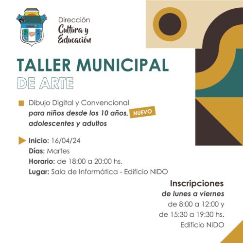 8 abril, 2024La Dirección de Cultura y Educación de Municipalidad de Monte de los Gauchos informa que, atendiendo a las solicitudes, amplió la edad de inscripción para el Taller de Dibujo Digital […]