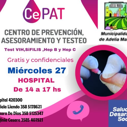 27 marzo, 2024El Área de Salud y Desarrollo Social de la Municipalidad de Adelia María informa que continúa la atención del Centro de Prevención, Asesoramiento y Testeo en la localidad. Hoy miércoles […]