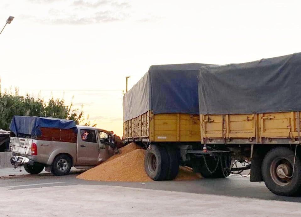 En un siniestro vial ocurrido este jueves, colisionaron una camioneta Toyota Hilux y un camión con acoplado cargado con maíz. El choque fue en el cruce de las Rutas 3 y 11, jurisdicción de Monte Maíz.