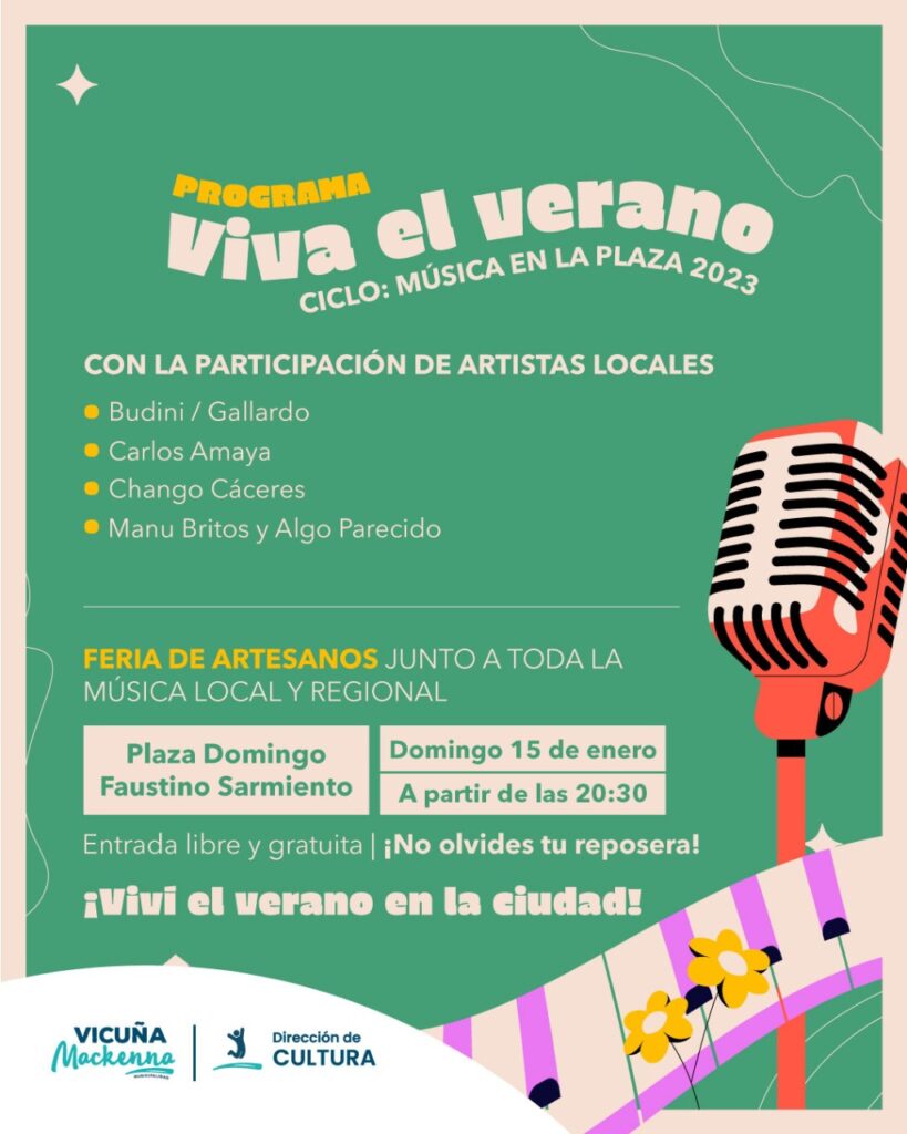 Se viene la segunda noche del ciclo de música en la Plaza 2023, Viva el Verano, de Vicuña Mackenna.