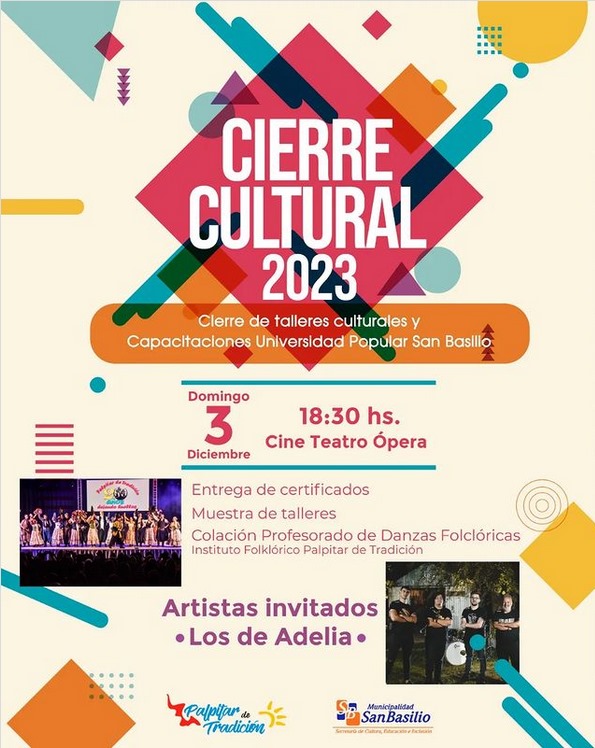 El Domingo 3 de Diciembre se realizará el acto de cierre de los talleres culturales y capacitaciones de Universidad Popular San Basilio que se dictaron durante el 2023.