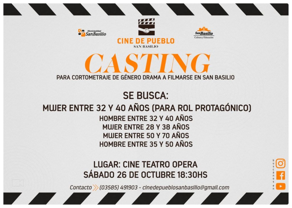 Podés contactarnos por mail a cinedepueblosanbasilio@gmail.com o por teléfono al 03585491903. También estamos en Facebook e Instagram: Cine de Pueblo San Basilio. ✍️
