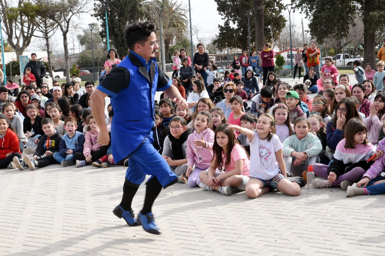 Los artistas mostraron sus habilidades en malabares, acrobacias, equilibrio y clown, e invitaron al público a participar de algunas actividades.