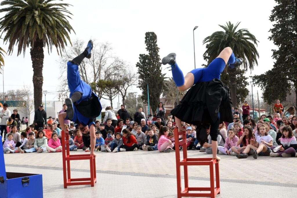 Los artistas mostraron sus habilidades en malabares, acrobacias, equilibrio y clown, e invitaron al público a participar de algunas actividades.