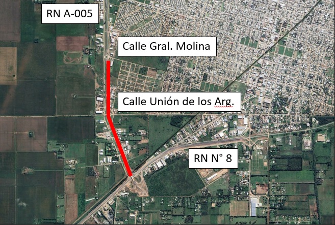 La obra consiste en duplicar la calzada sobre la ruta A-005, entre la ruta nacional 8 y la calle General Molina, en un tramo de 2.000 metros. La circunvalación busca mejorar el tránsito y la calidad de vida de los habitantes de la capital alterna, que tiene uno de los mayores cruces del país.