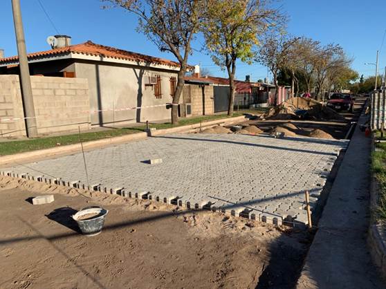 Luego de las tareas de nivelación del terreno por parte de personal municipal, se procede a la construcción por parte de personal contratado. Este pavimento articulado permite realizar un trabajo resistente, estético, ordenado, limpio y práctico, optimizando tiempos y costos.
