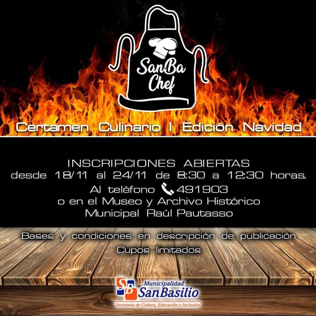 La Municipalidad de San Basilio lanzó las inscripciones para el certamen culinario Sanba Chef, edición navidad. El mismo es organizado por la Secretaría de Cultura, Educación e Inclusión y contará con cupos limitados.