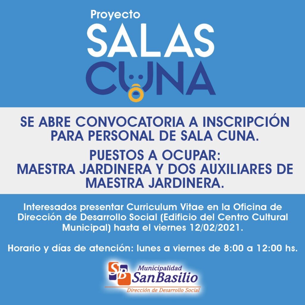 Comienza la convocatoria a inscripción para personal de Sala Cuna.