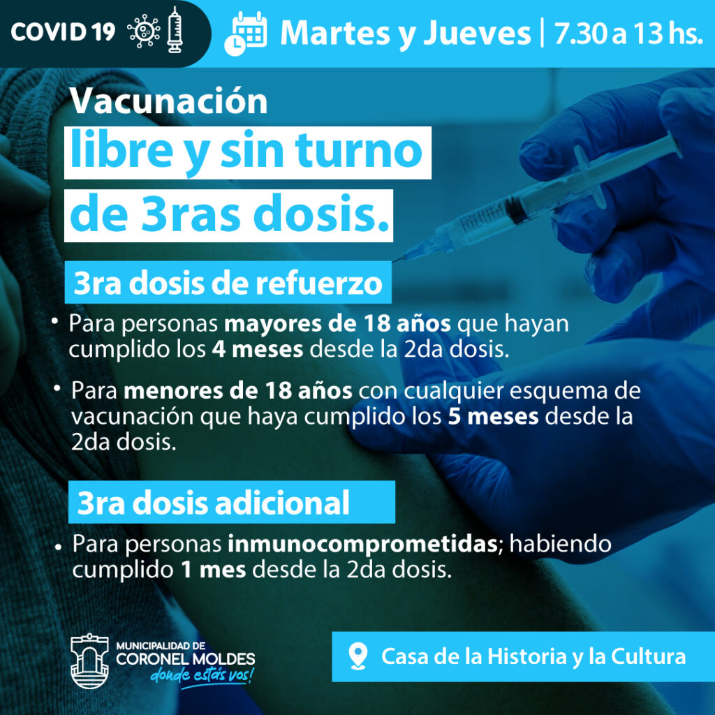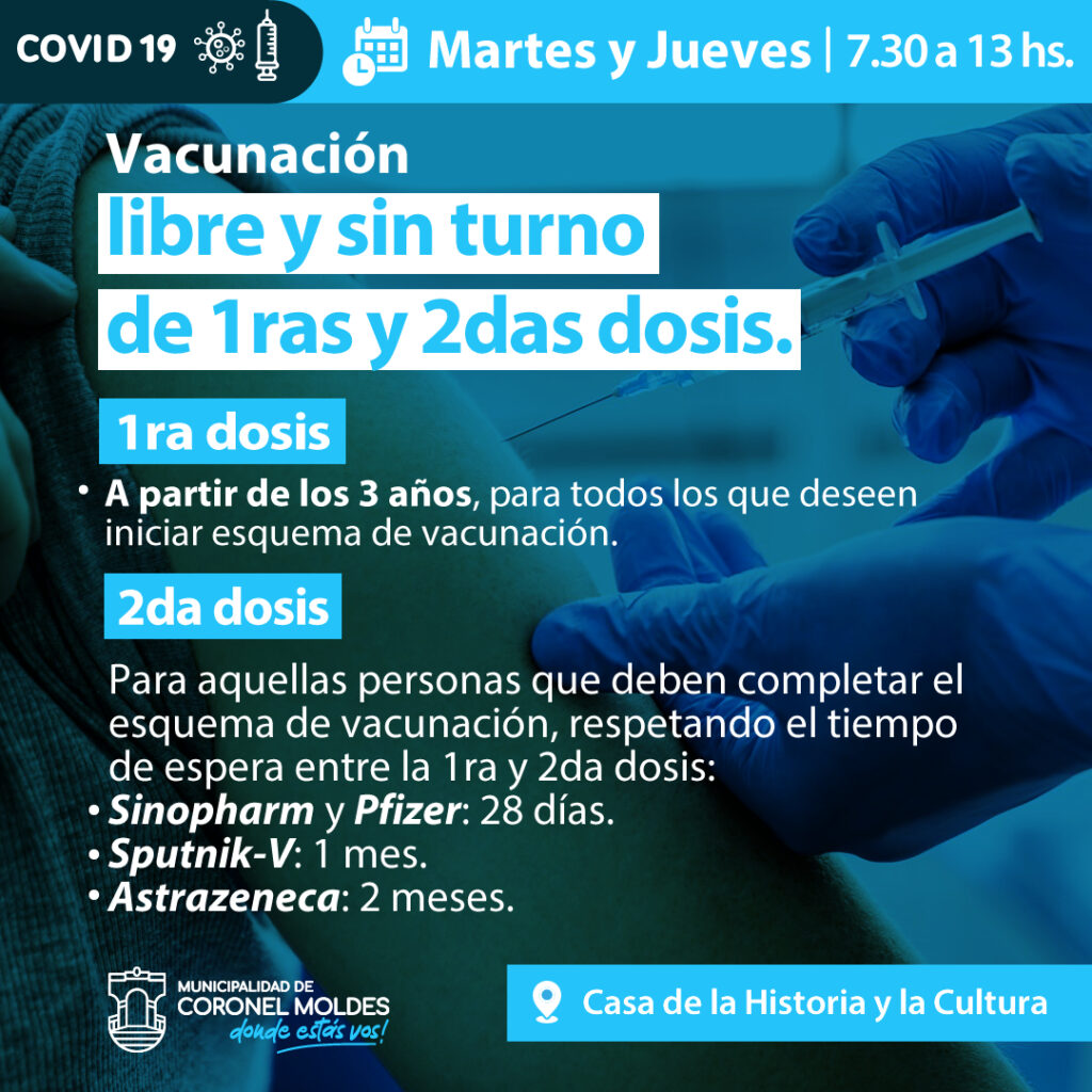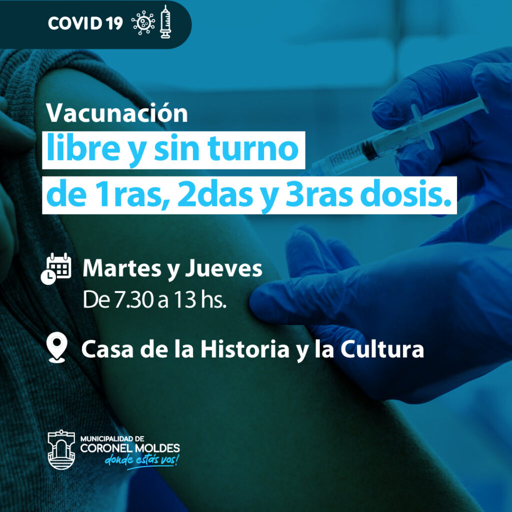 Coronel Moldes continúa con el proceso de vacunación libre y sin turno previo.