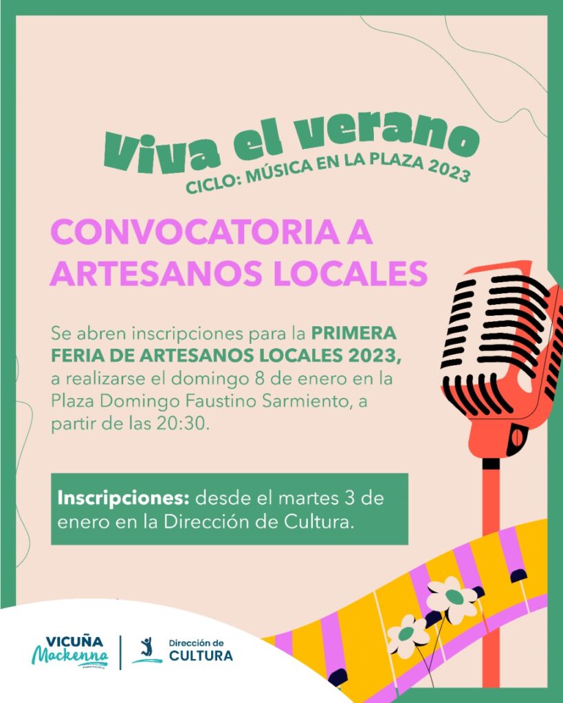 Bajo el marco del programa «Viva el verano en la ciudad”, la Municipalidad de Vicuña Mackenna invita a todos los artesanos locales a inscribirse para participar de la primeria Feria de Artesanos locales 2023.