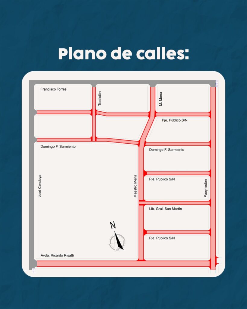* Calle Tradición, entre calles Domingo F. Sarmiento y Francisco Torres.