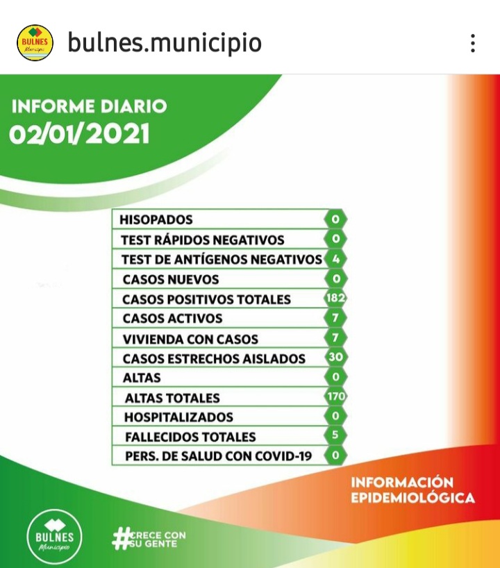 La Municipalidad de Bulnes informó, en la jornada de ayer, que son siete los casos activos identificados en la localidad.