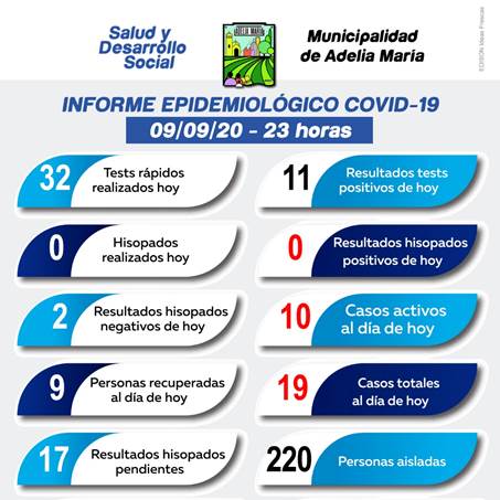 La Municipalidad de Adelia María informó que en la jornada de ayer no se registraron nuevos casos positivos de Covid-19.