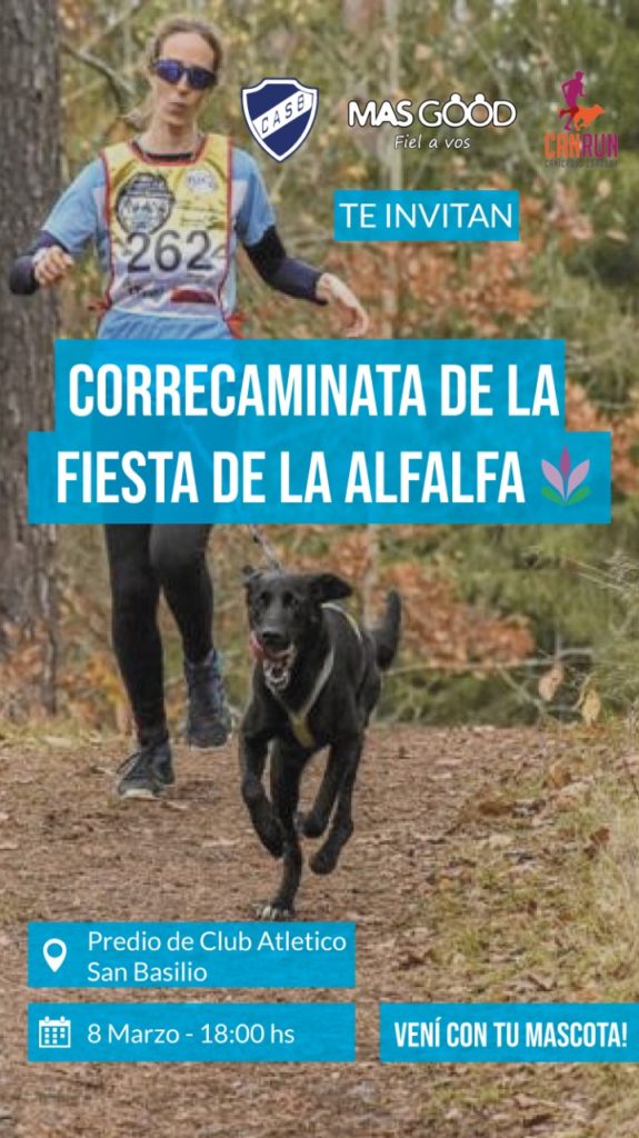 Invitan a toda la comunidad de San Basilio a participar de la correcaminata “Más Good” junto con tu perro en el ámbito de “La fiesta de la alfalfa”.