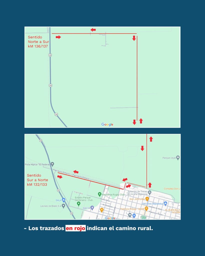 El horario del corte será de 08:00 a 16:00 hs. Los vehículos que circulen por la ruta deberán tomar un desvío por un camino rural de 11,5 km que se indica en el mapa adjunto.