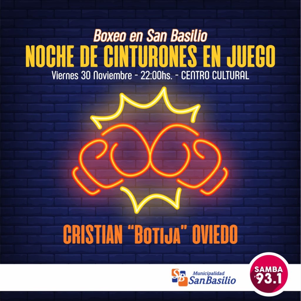 De la mano de Promociones San Miguel regresa el boxeo a San Basilio. En una velada que promete buenos combates, Cristian «Botija» Oviedo y Facundo «Cachete» Fuentes expondrán sus respectivos títulos provinciales.