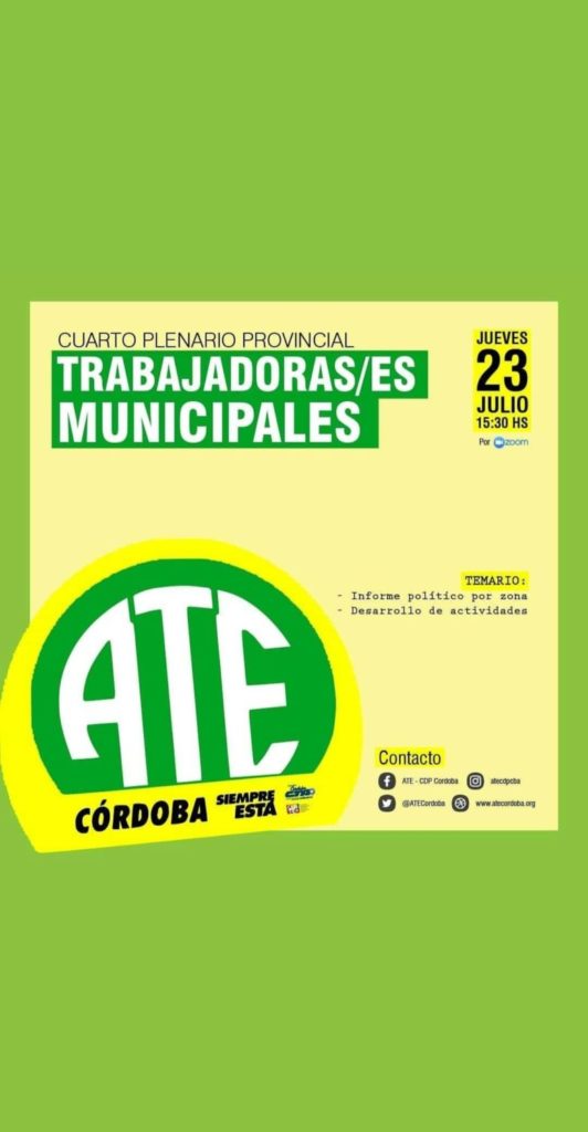 «Seguimos creciendo y organizándonos en el sector municipal de la provincia», remarcan desde ATE Córdoba.