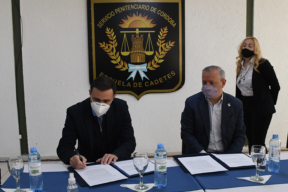 El ministro del área, Julián López, y el rector de la UNVM, Luis Alberto Negretti, fueron los encargados de rubricar el acuerdo institucional de colaboración, en una reunión en la que también tomaron parte, entre otras autoridades, la secretaria de Organización y Gestión Penitenciaria, Cecilia Lanzarotti; el jefe del Servicio Penitenciario, Juan María Bouvier; el director de Desarrollo Territorial de la UNVM, Omar Barberis y la directora general de Capacitación Profesional Penitenciaria.