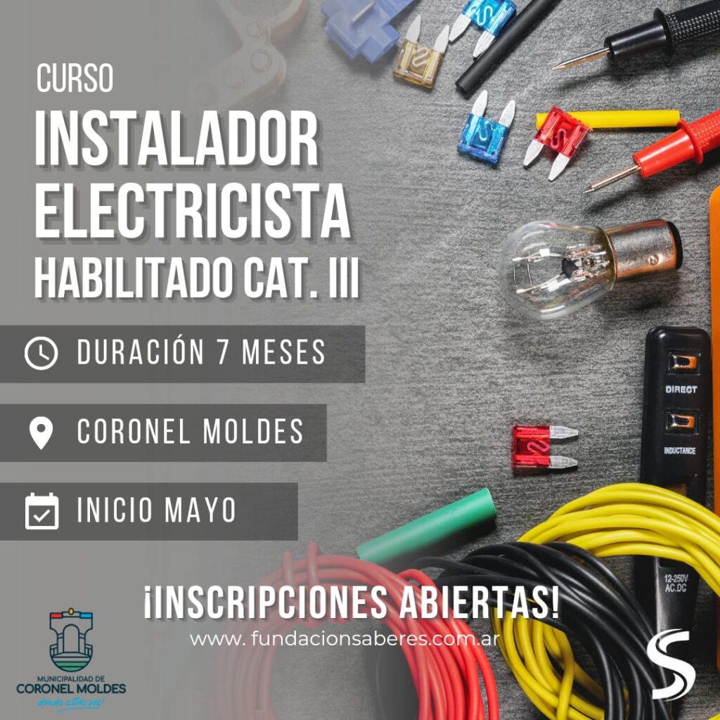 La Municipalidad de Coronel Moldes informó que ya se encuentran habilitadas las inscripciones para el curso de Electricista Habilitado III, el cual cuenta con una duración de 7 meses, con clases semanales de 4 horas. Jueves de 15:00 a 19:00 hs.