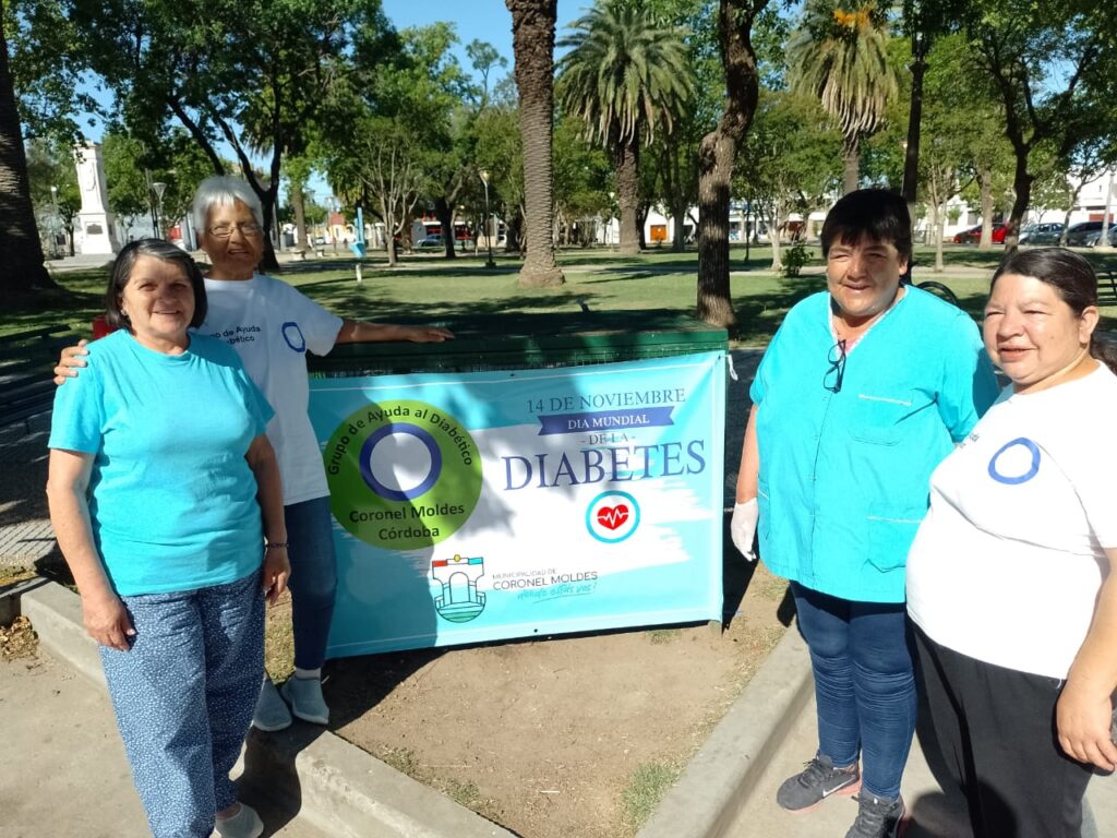 La enfermera a cargo de la Sala de Primeros Auxilios, Mercedes Amaya, junto a integrantes del grupo Prevención de la Diabetes estuvieron realizando controles de glucemia en la Plaza Nicolás Avellaneda de Coronel Moldes, en el marcos del Día Mundial de la Diabetes.