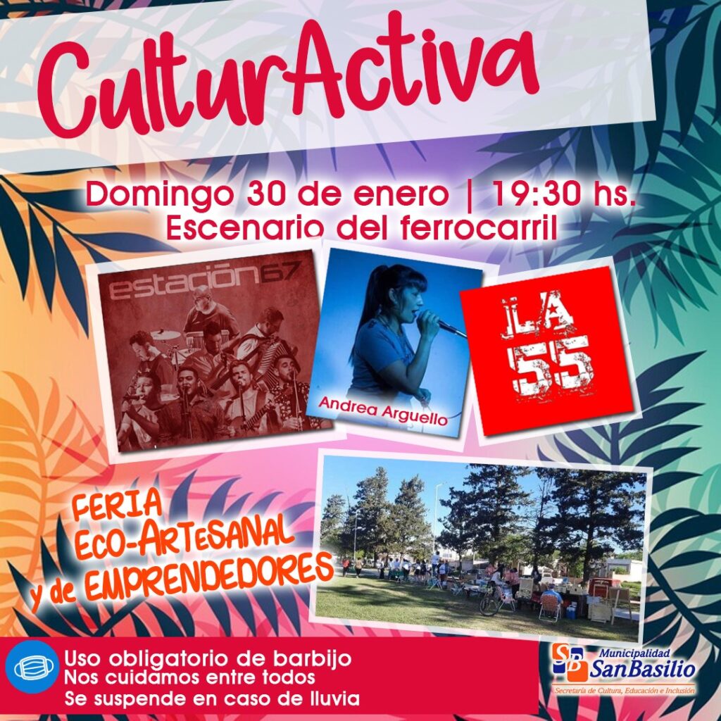 Este domingo llega CulturActiva a San Basilio, un evento veraniego que fusiona diversas expresiones artísticas musicales junto a la Feria Eco-Artesanal y de emprendedores.