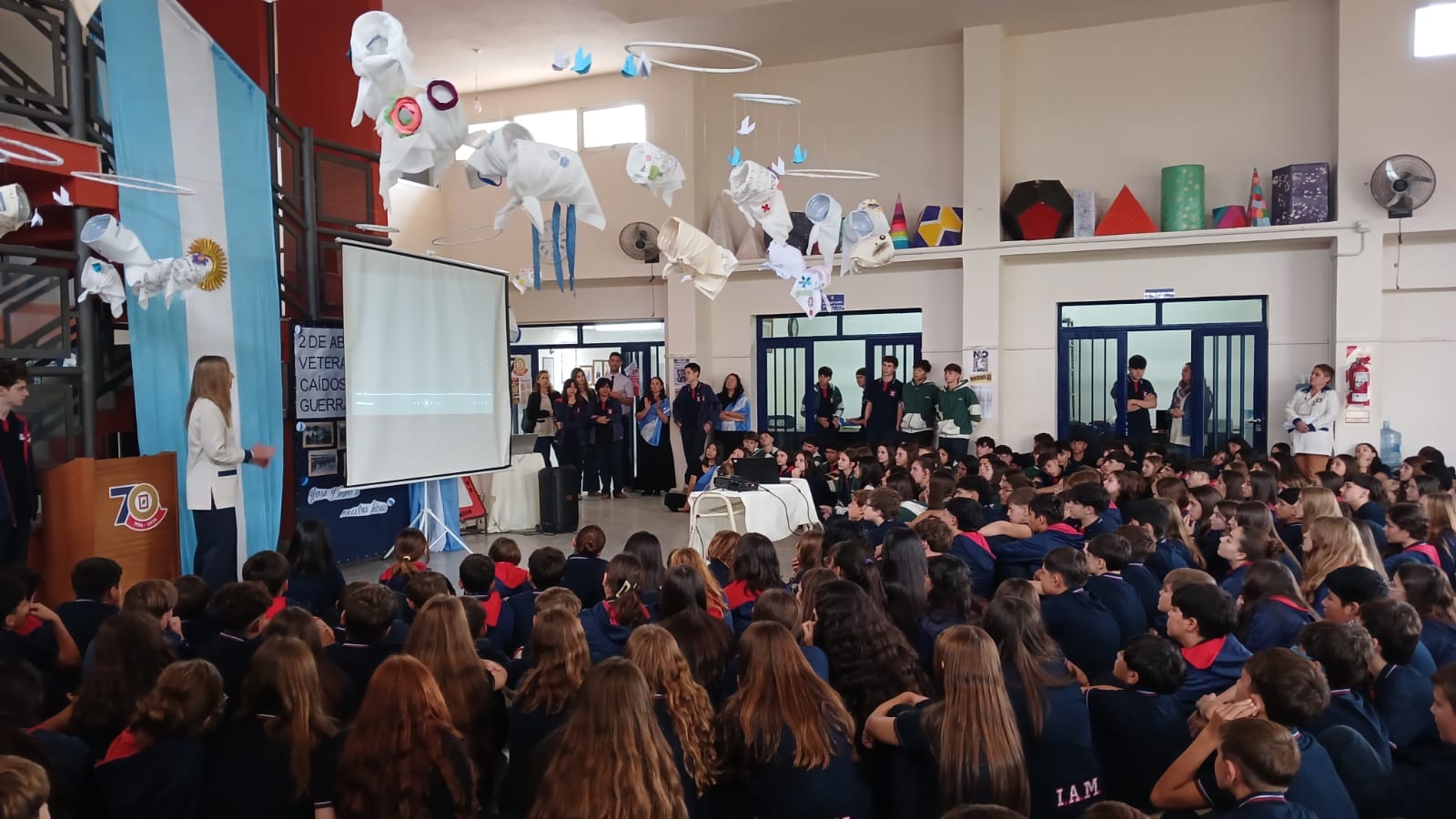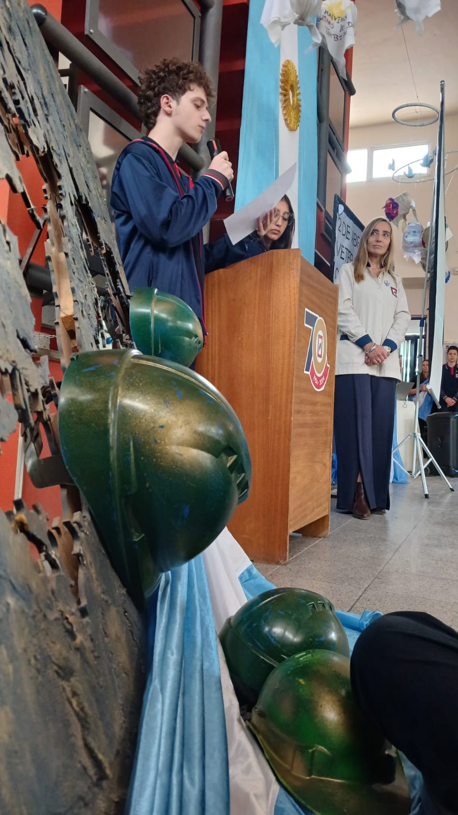 Los presentes observaron con atención un emotivo video realizado por Mariana Ceballos, Tobías Quintanilla y Brisa Sosa de 5° Año “B”. De esta manera, se apeló a que los jóvenes empatizaran con los soldados que, con su misma edad, enfrentaron una guerra, en inferiores condiciones de armamento, equipamiento, entrenamiento y capacitación respecto a Gran Bretaña, en un contexto de hambre, desprotección y frío.