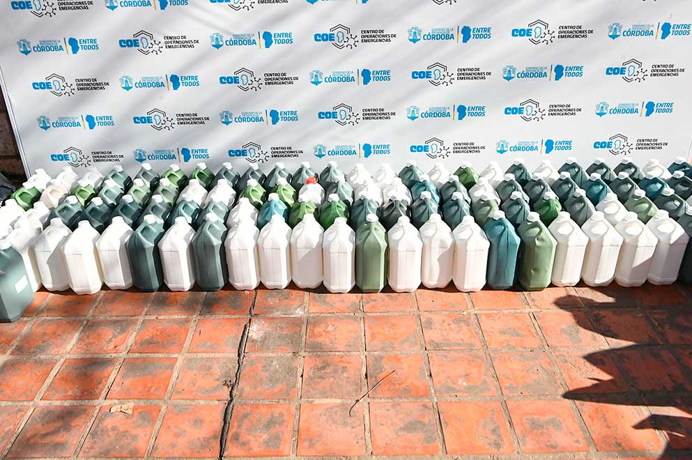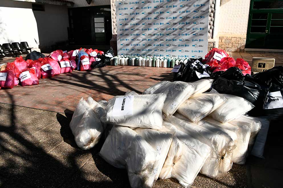 El ministro de Gobierno, Facundo Torres, y el coordinador del COE, Juan Ledesma, hicieron entrega de insumos sanitarios a las autoridades del COE regional de Río Cuarto. Se trata de 272 máscaras faciales y barbijos N95; 5.670 barbijos quirúrgicos y batas, 23.800 pares de guantes y 178 bidones de 5 litros de alcohol en gel, destinado a los centros de salud de los seis departamentos comprendidos en ese organismo.