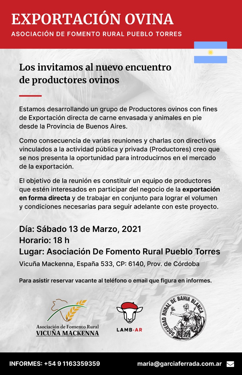 Distintos productores del sur de Córdoba se reunirán en Vicuña Mackenna para armar grupos de trabajo en distintas localidades con el objetivo de participar del negocio de la exportación en forma directa y trabajar en conjunto para cumplir con los estándares y requisitos solicitados.