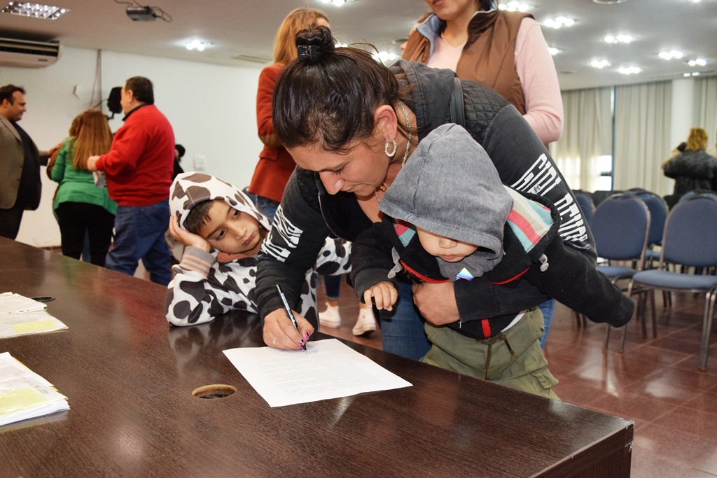 En el acto estuvieron presentes la delegada del Ministerio de Hábitat y Economía Familiar, Georgina Bustos; el delegado del Ministerio de Gobierno Roberto Koch; y el concejal de Las Higueras, Gianfranco Luchessi.