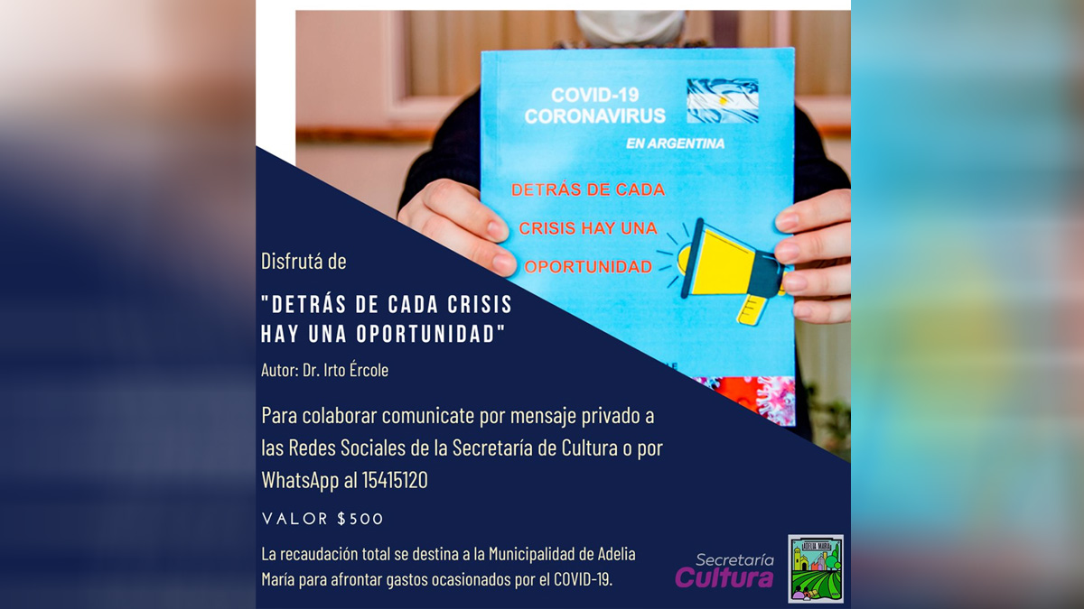 “Detrás de cada crisis hay una oportunidad” es el título del libro que en plena cuarentena escribió Irto Ércole, abogado y docente de Adelia María, con el fin de aportar distintas miradas y análisis sobre la pandemia del Covid-19, pero además pensando en ayudar a la prevención de esta enfermedad.