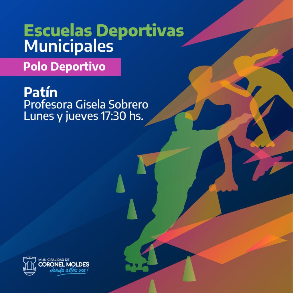 Ya se iniciaron las inscripciones para la Escuela Deportiva Municipal de Patín en Coronel Moldes, a cargo de la Profesora Gisela Sobrero, los días Lunes y jueves en el horario de 17.30 hs. El lugar de encuentro será el Polo Deportivo.