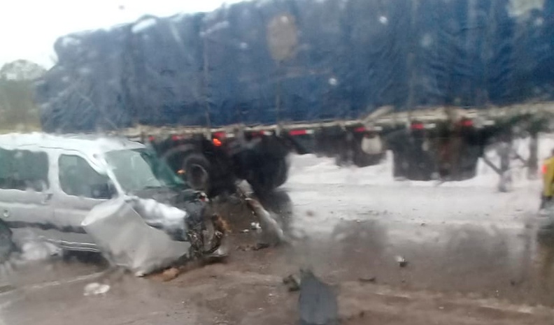 Por causas a establecer, en la intersección de rutas A005 y nacional Nº 8 colisionaron un utilitario Peugeot Partner y un camión, obstruyendo el tránsito de otros vehículos.