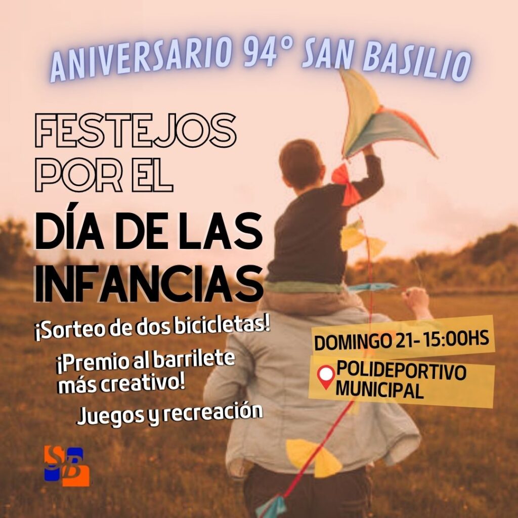 Con motivo del festejo del Día de las Infancias, la Municipalidad de San Basilio organizó un super evento el día 21 de Agosto , a partir de las 15 hs en el Polideportivo Municipal .