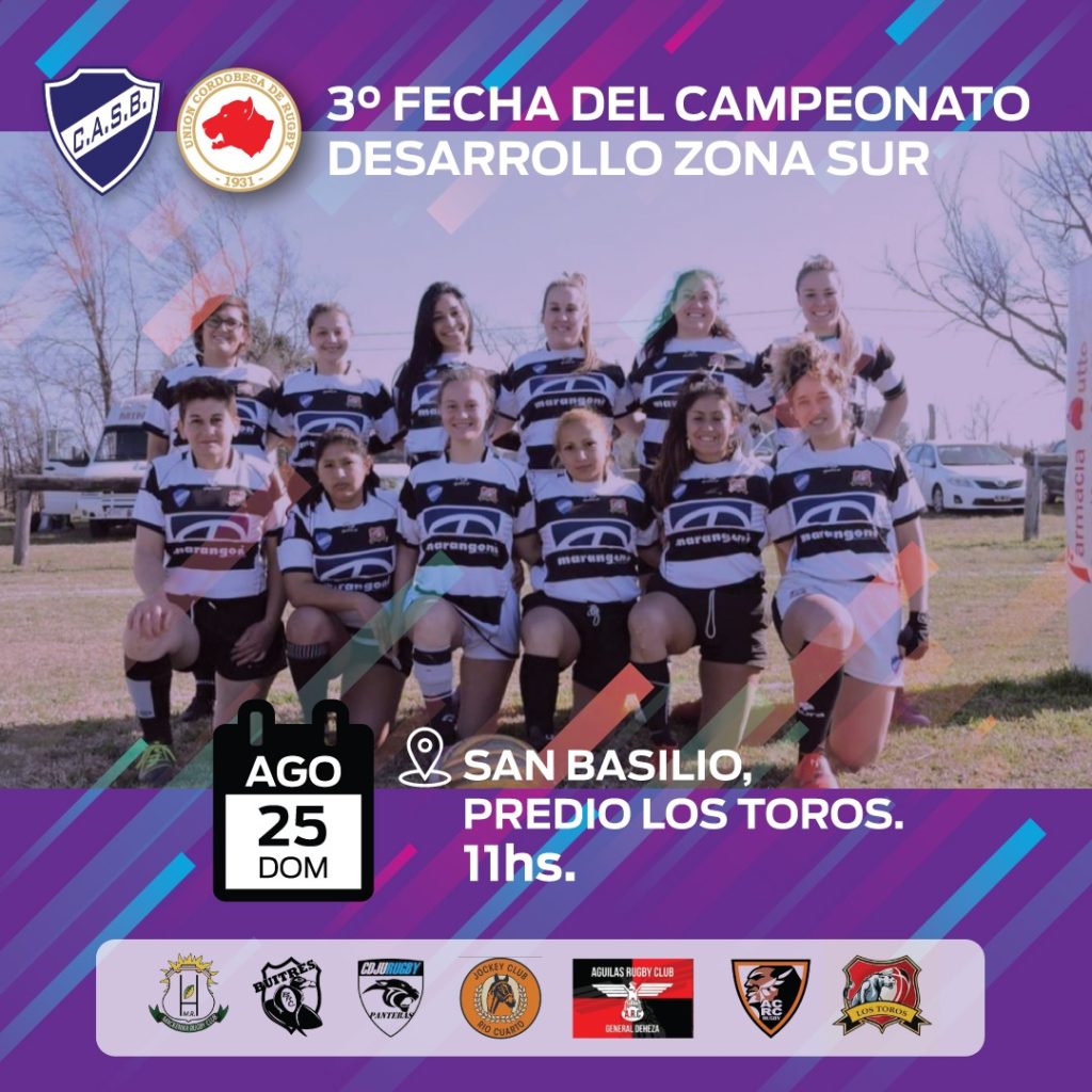 Este domingo 25 de agosto habrá mucho rugby en San Basilio. El equipo femenino jugará desde las 11, por la tercera fecha del  Desarrollo Zona Sur.