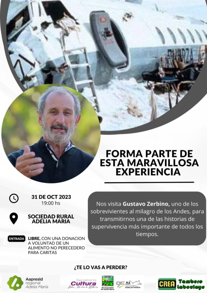 En el día de hoy, en la Soc Rural de Adelia María, tendrá la visita de Gustavo Zerbino, sobreviviente de la tragedia de los andes.