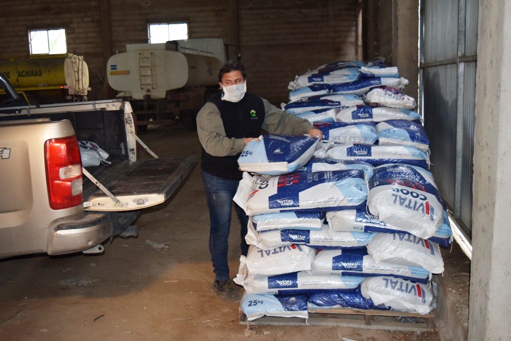 Durante la mañana de hoy se realizó una distribución de alimento balanceado en la localidad de Achiras, donde se estableció la base logística para un operativo destinado a los afectados en ese sector de las Sierras del Sur. Días atrás, ya se habían entregado otras 1.100 bolsas en Alpa Corral, y otras 1.100 en Las Albahacas.