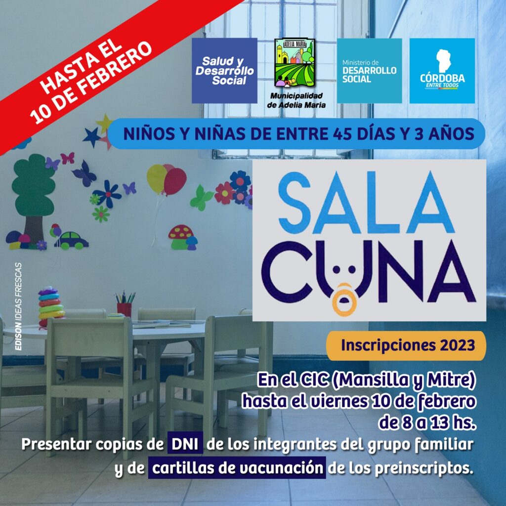 Sala Cuna «Jardín Encantado», un espacio para niños y niñas de entre 45 días y 3 años, abrió sus inscripciones para el ciclo 2023, las mismas estarán vigentes hasta el día 10 de Febrero.